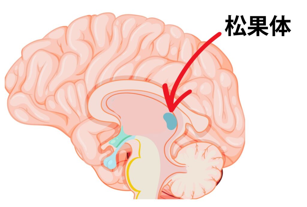 松果体は人間の1日の生活リズム(サーカディアンリズム)、昼は活発に活動(仕事、活動して)、夜は眠る自然のサイクルに合わせて、自律神経である昼のホルモンと交感神経、夜のホルモンと副交感神経を働かせて、朝の光を感じ取って「体内時計を切り替えるスイッチとして働く機能」を持ちます。
